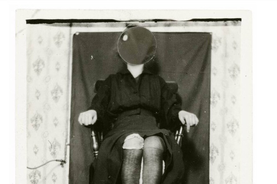 Abb: William J. Crawford, Das Medium Kathleen Goligher mit Ektoplasma an den Beinen, Belfast 1920, Fotografie, Silbergelatineabzug (Courtesy IGPP Freiburg i. Br.)