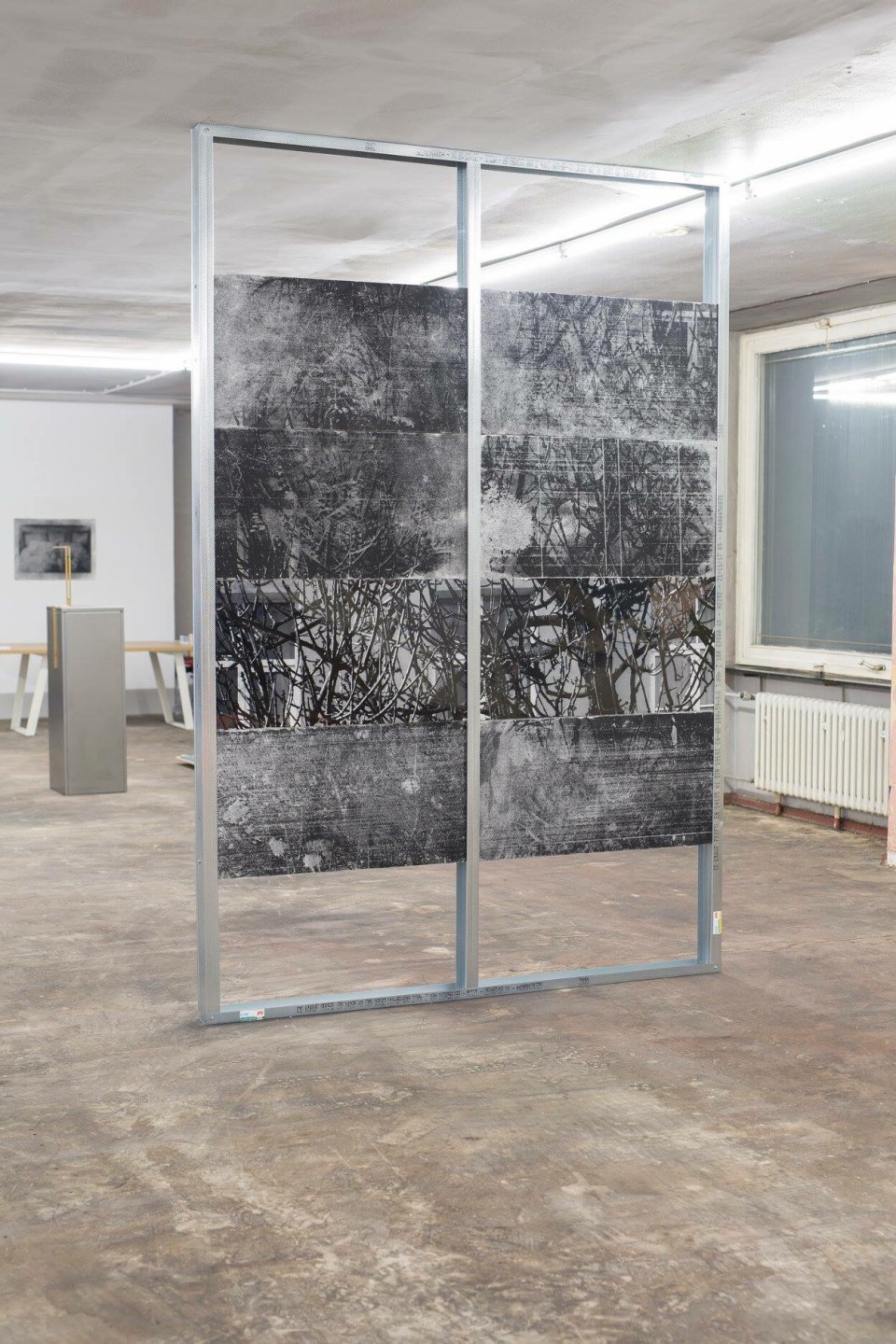 In jüngster Zeit hat sich Olu Ogunnaike mit Holz als industriellem Rohstoff beschäftigt, der in der heutigen globalen Gesellschaft zirkuliert. Sein raumhohes Objekt „Stock: 107792391“ besteht aus acht Siebdrucken mit Holzkohle auf Styropor. Da das Material nicht auf dem Träger fixiert ist, werden die Einflüsse von Raumluft, Zeit oder auch Transporten die Werke verändern – vielleicht bleibt irgendwann nur das Styropor zurück.