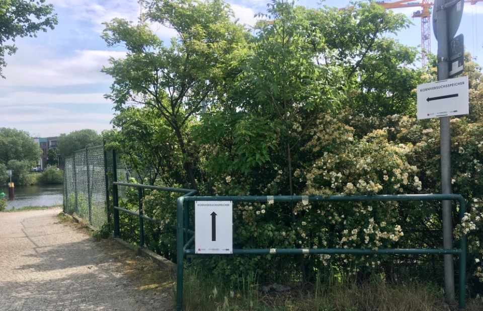 Es benötigt etwas Ortskenntnis und gute Hinweise, lohnt sich jedoch sehr: die neuentdeckte Kunst- und Kulturlocation Kornversuchsspeicher liegt inmitten der riesigen Berliner Baustelle „Europacity“ (mit dem Auto: Heidestraße/Sellerstraße; zu Fuß: besser über die Promenade am Berlin-Spandauer-Schifffahrtskanal (Eingang rechts vom Hamburger Bahnhof gelegen), den Invalidenfriedhof entlang und dann die Brücke Höhe Sellerstraße. [weitere Infos unten]