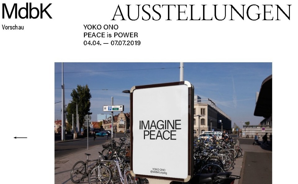 „Peace is Power“ vom 4.4. – 7.7.2019: Ein zentrales Thema im Leben, Denken und Schaffen der japanisch-amerikanischen Künstlerin Yoko Ono (*1933) ist das Kräfteverhältnis zwischen Krieg und Frieden, wobei ihre Haltung eindeutig ist: „Free you – Free me – Free us – Free them“, so hat sie es selbst vor wenigen Jahren zusammengefasst.