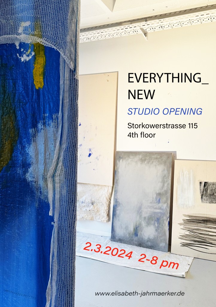 Unter EVERYTHING_NEW läuft die kommende Ausstellungseröffnung von Elisabeth Jahrmärker: neues Studio, neue Werke – ein neuer Ort für Begegnungen in Berlin. Da die Künstlerin sowohl Kollaborationen als auch den Austausch mit Kolleg:innen und Sammler:innen in persönlicher Atmosphäre schätzt, werden wir wohl noch einiges aus der vierten Etage der Storkower Straße 115 hören. Im Preview-Gespräch darf ich von ihren Werken, aber auch darüber hinausgehend wunderbaren Ideen hören. Los geht’s am Samstag, den 2. März, 14 bis 20 Uhr. (Jana Noritsch)